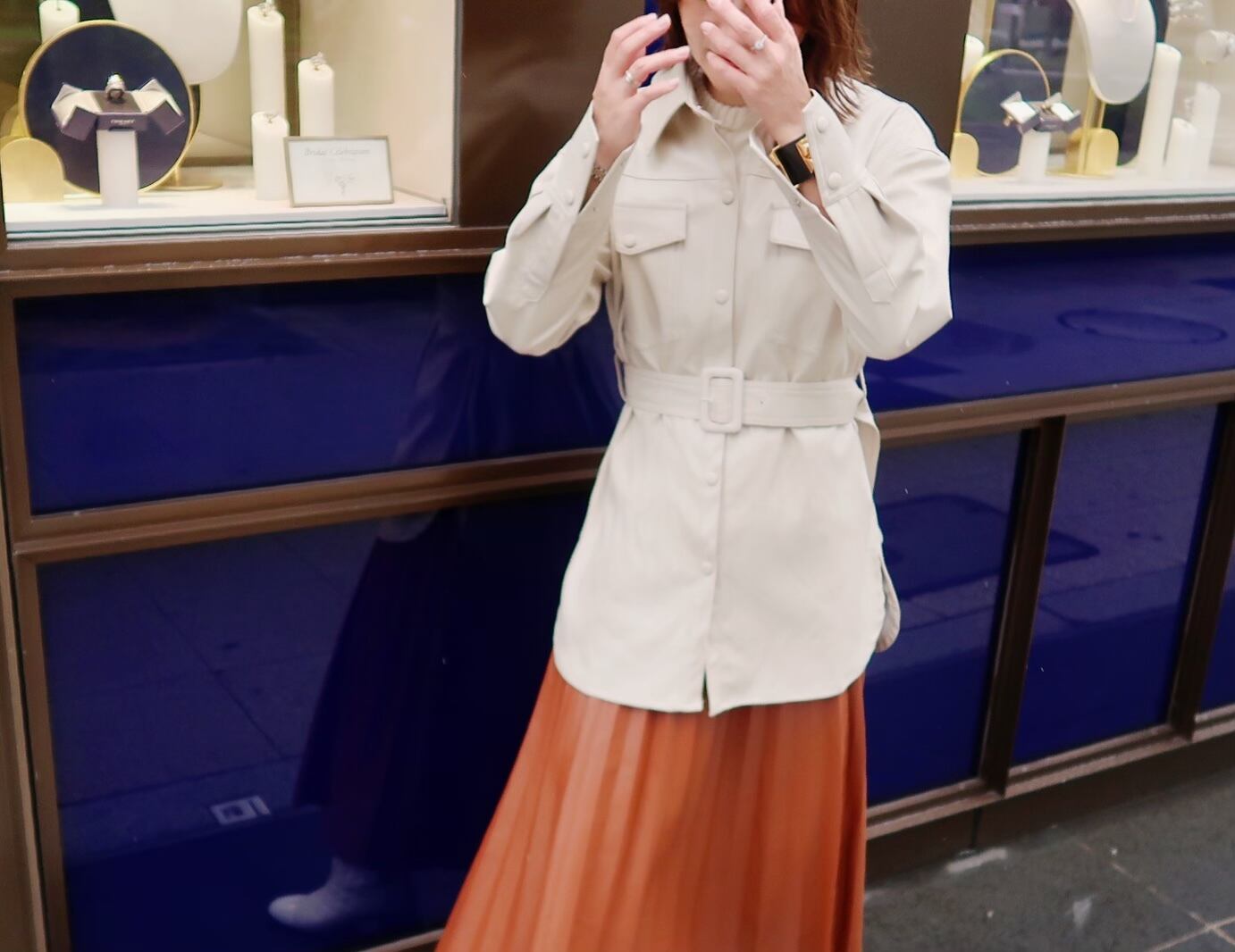 オーバーなシルエットでウエストベルトでメリハリのあるスタイルに。ヴィンテージ風フェイクレザーでこなれ感をプラス。羽織としても使えるので、秋から冬にかけてお使いいただける1枚です。